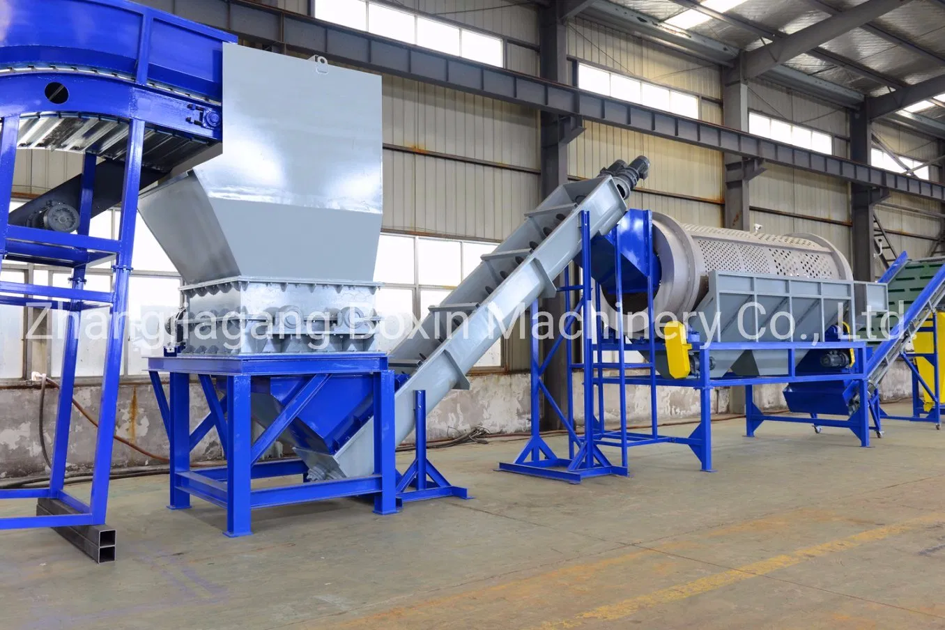 El empacado de(abridor de fardos)------Trommel-----(el removedor de desecho de la etiqueta etiqueta) ------ ClasificacióN manual y la deteccióN de metales-----amolado húMedo(chancadora)-------transportador de husillo------la separacióN de la gravedad(flotando arandela)-------transportador de husillo------lavado quíMico para PET Flakes(Hot arandela)-------transportador de husillo------arandela de friccióN de alta velocidad ------- transportador de husillo------flotante Tanque de lavado ------- de la máQuina de deshidratacióN--------sistema de canalizacióN de secado--------separador de etiqueta(tipo de separador de la etiqueta de aire en zig-zag)------tolva de almacenamiento/embalaje